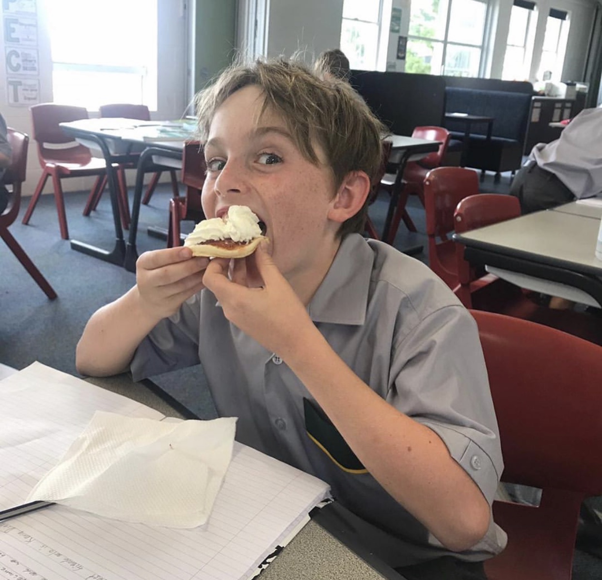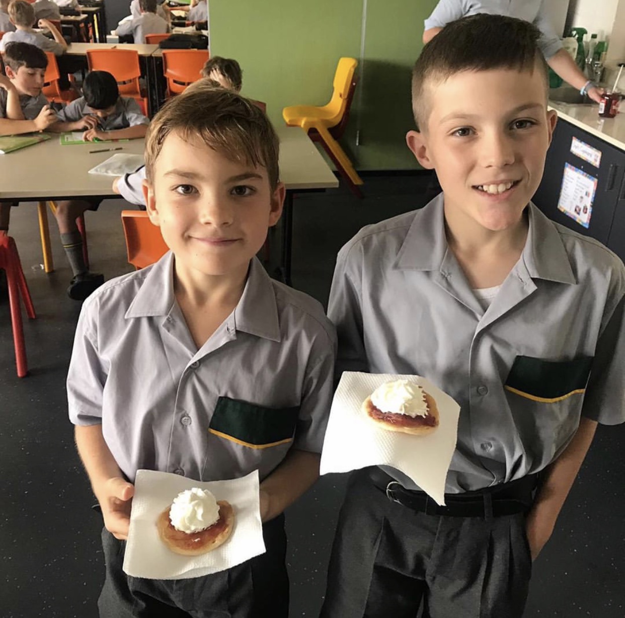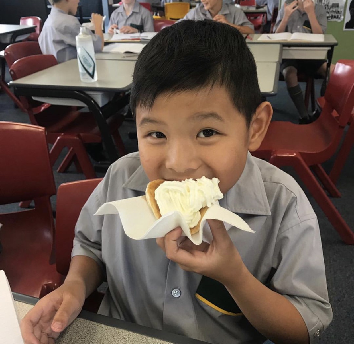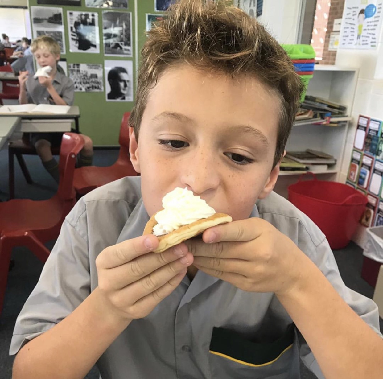 Year 5 Red and 5 Blue enjoying pancakes on Shrove Tuesday.