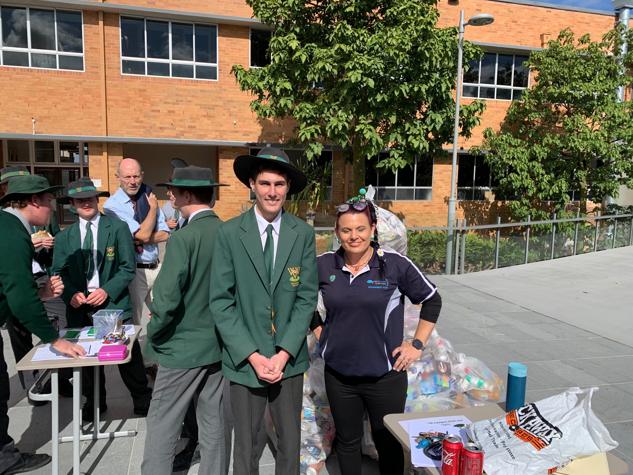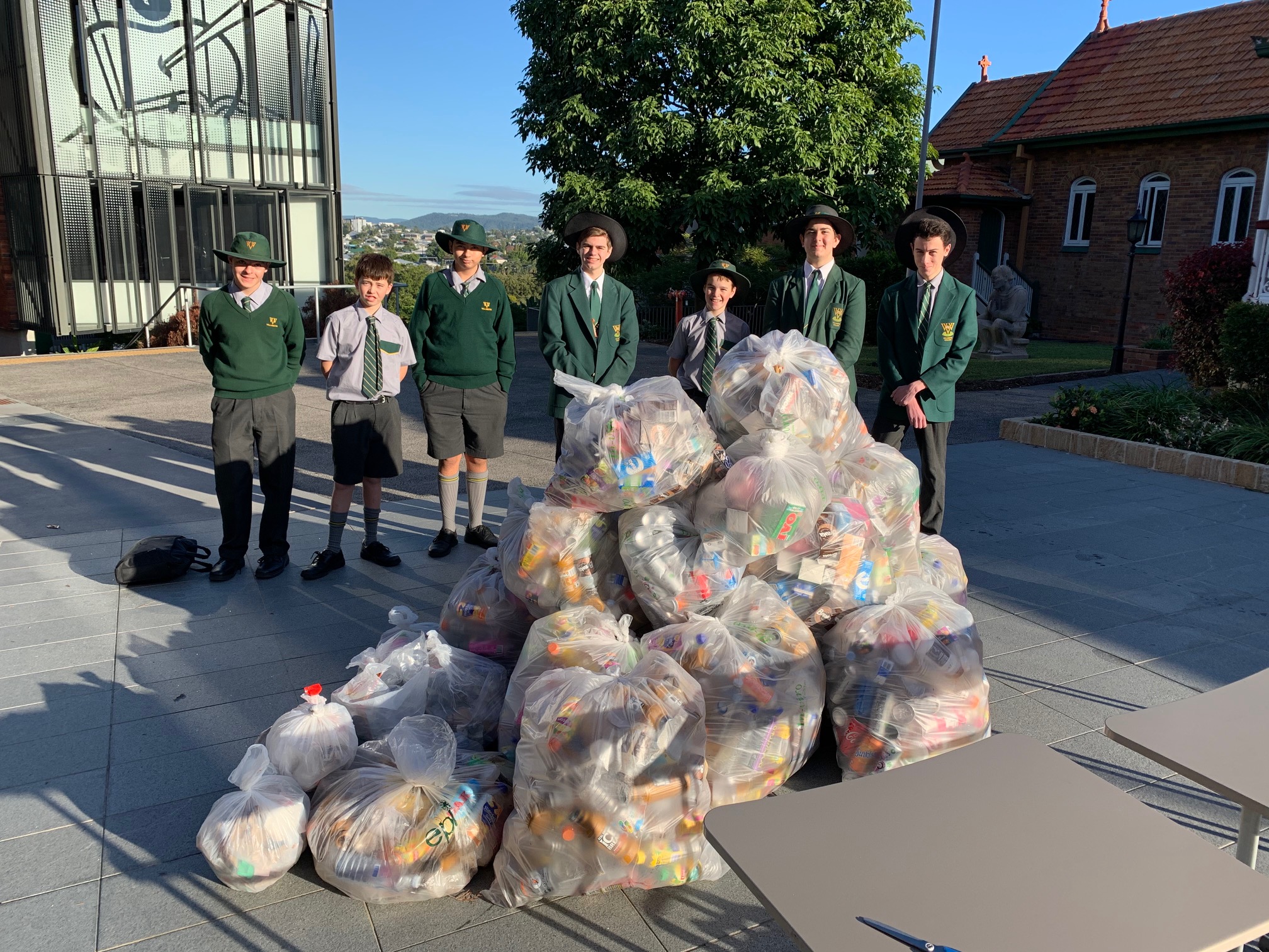Under the energetic and creative leadership of Theo Day (Year 12), and Campus Minister, Fr Saldie Resolado, the Green Team assembled an effective display for students to interact with last Friday. There were two piles of rubbish. One represented evil, and one good. The good pile consisted of over 1,700 cans and bottles recycled by students in the last three weeks. No doubt, at least one plastic bottle would have otherwise made its way into Norman Creek – and into the gut of a bird or a turtle. Also, the money raised through recycling is put back into the system, for example Fr Saldie’s judicious purchase of three plastic basketball hoops for boys to aim the bottles and cans through – and therefore into the right bin.